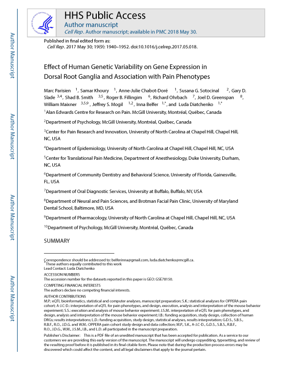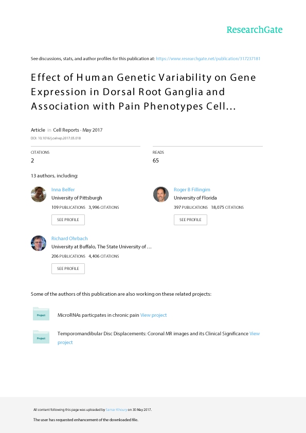Effect of Human Genetic Variability on Gene Expression in Dorsal Root Ganglia and Association with Pain Phenotypes Cell...