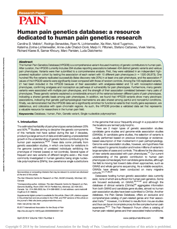 Human pain genetics database: a resource dedicated to human pain genetics research