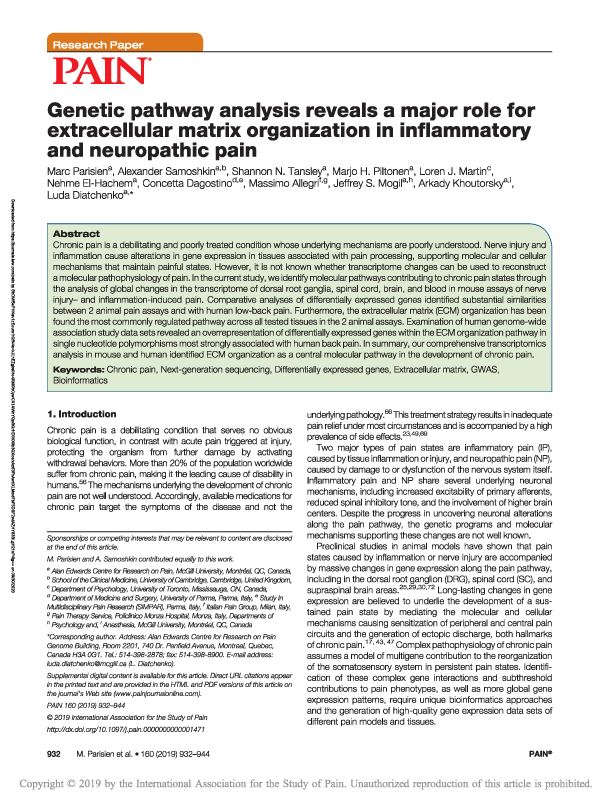 Genetic pathway analysis reveals a major role for extracellular matrix organization in inflammatory and neuropathic pain