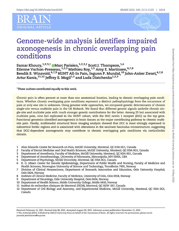 Genome-wide analysis identifies impaired axonogenesis in chronic overlapping pain conditions