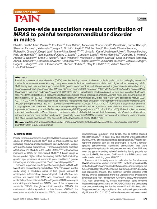 Genome-wide association reveals contribution of MRAS to painful temporomandibular disorder in males