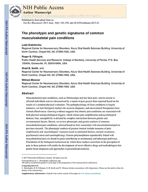 The Phenotypic and Genetic Signatures of Common Musculoskeletal Pain Conditions