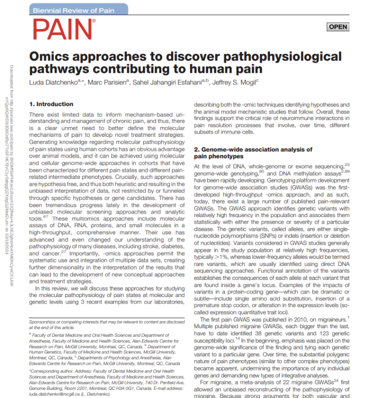 Omics approaches to discover pathophysiological pathways contributing to human pain